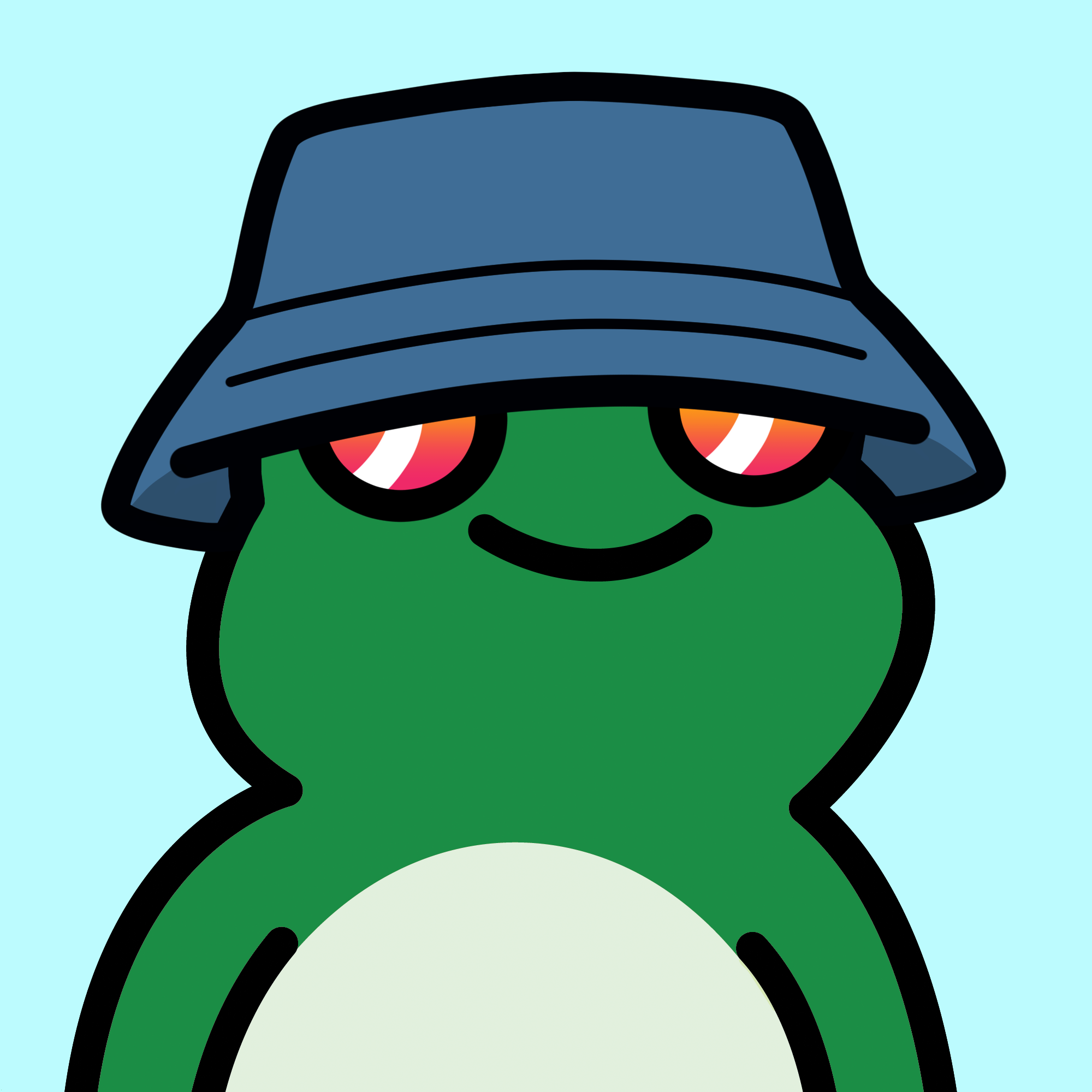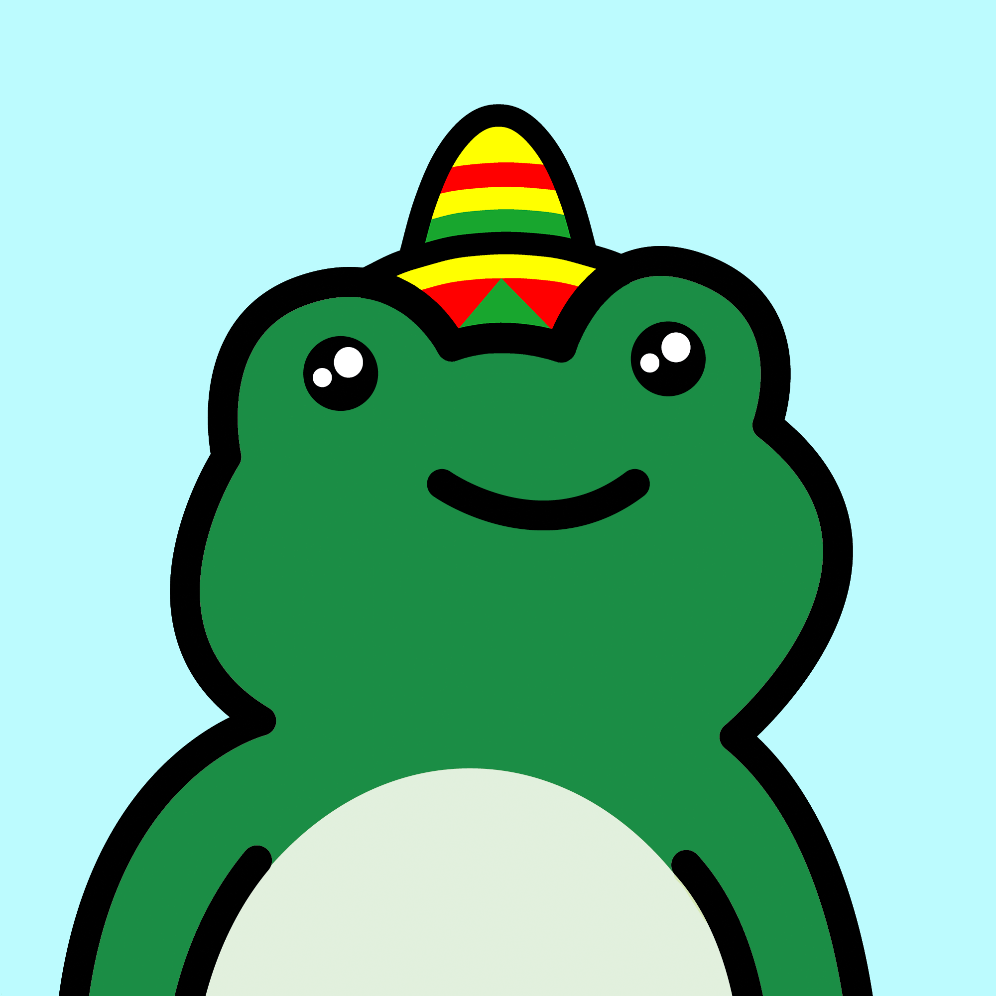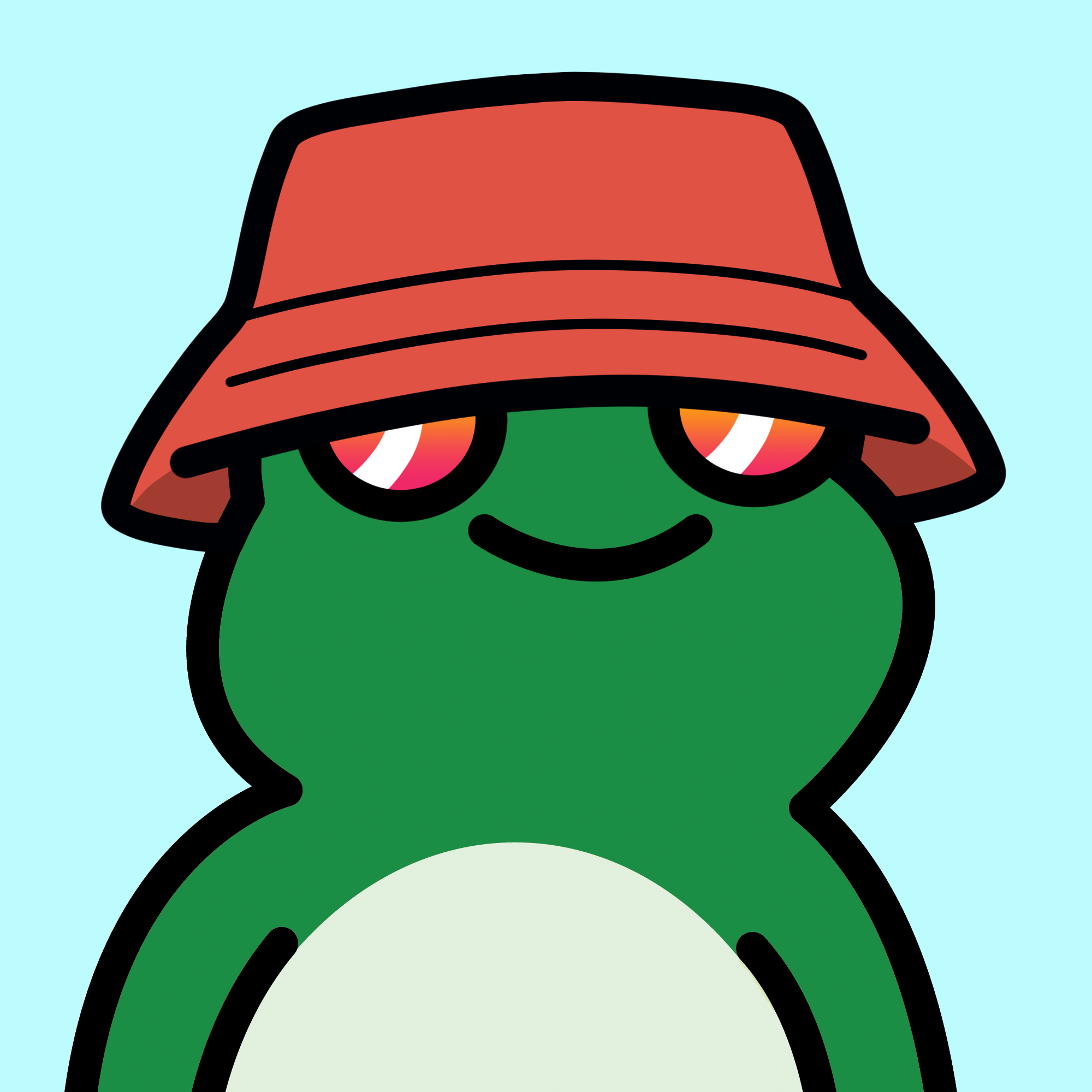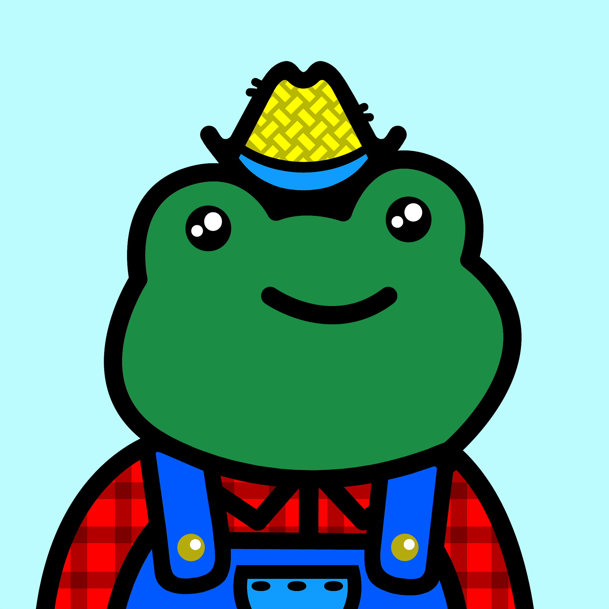* Farmer hat swappable with antennas, apple, astro helmet, bald, all frens, beanies, flowers, mushrooms, chef, clown, crown, devil horns, hair, halo, heart, lemon, propeller, sprout